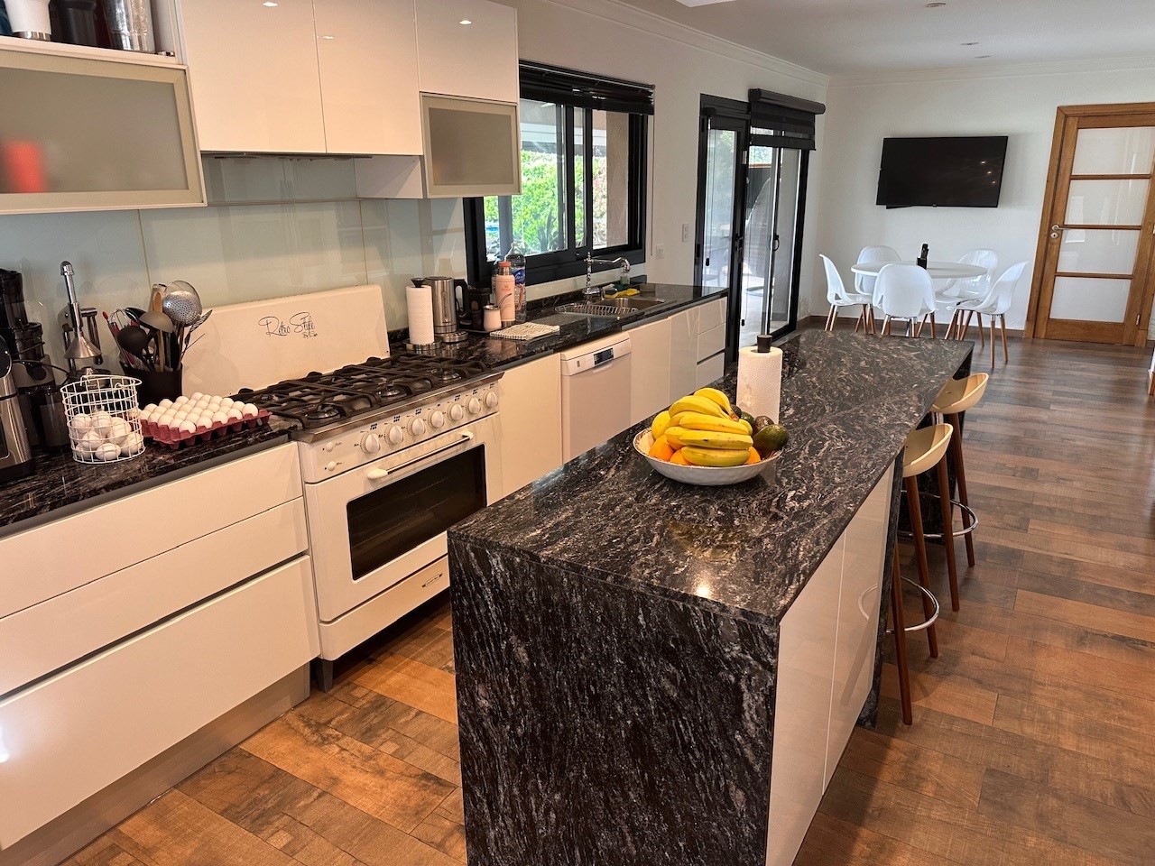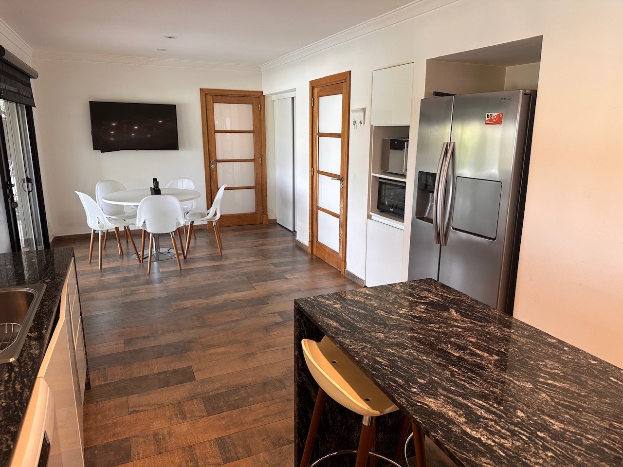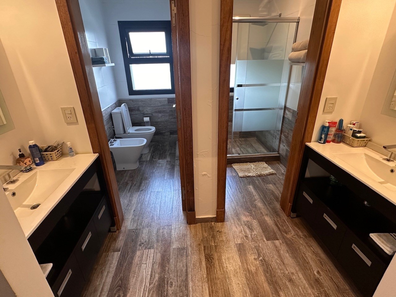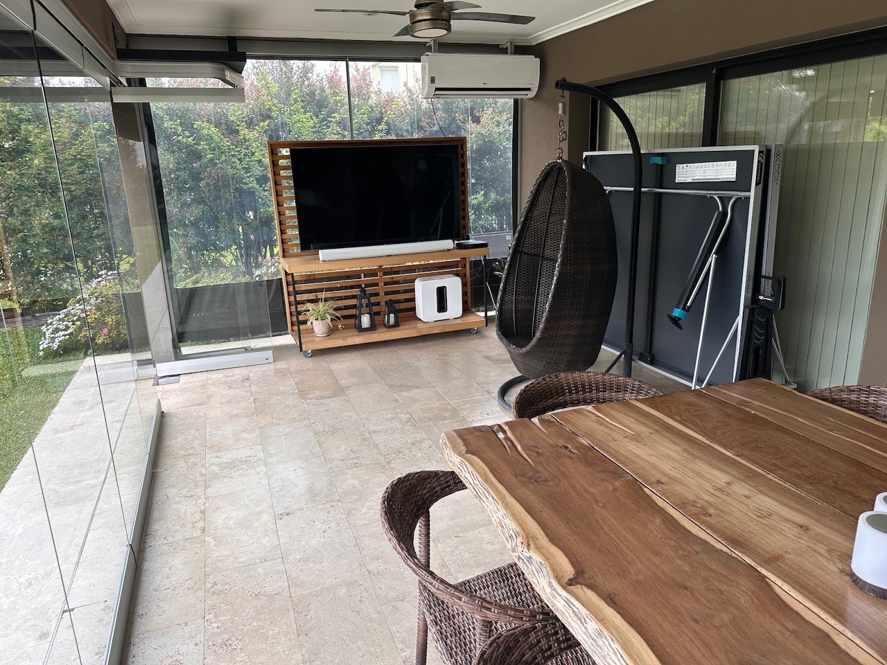 Casa en Alquiler y Venta Albanueva 3 dormitorios y pileta con amplios ambientes sociales. Acepto departamento en parte de pago! Racionalista, funcional, de líneas rectas y al mismo tiempo cálida, vista a la reserva, con amplios espacios que invitan a compartir momentos del día. Al ingreso amplio hall, escalera de madera maciza con barandas de blindex que le da categoría. Doble circulación a cocina y living comedor. Amplio toilette. El living comedor cómodo que al ser bien largo queda bien separado, pasa lo mismo con la cocina la cual es amplia con isla y comedor diario. Equipada con alacenas, bajo mesadas, horno 6 hornallas, extractor, lavavajillas, heladera doble, amplia bacha de acero inoxidable, doble despensa. Amplio lavadero y amplio cuarto exterior de guardado. Baño exterior. Galería con cerramiento de pliegues, uno de los ambientes más utilizados, ventiladores de techo, aire acondicionado, parrilla con barra, bacha y cocina. Muy linda vista al jardin, reserva y a la pileta con borde infinito. Tranquila y privada. El acceso vehicular es doble, con espacio para 2 vehículos cubiertos y 4 descubiertos. En planta alta nos encontramos con un espectacular playroom de grandes dimensiones, hoy lo utilizan como lugar de estar, gym y zona de entretenimiento. Este amplio espacio vincula a los 3 dormitorios y al escritorio. Los dormitorios secundarios tienen vista al jardín y son en semi suite. La Master suite tiene salida a terraza, vestidor y amplio baño con bañadera y box de ducha. La calefacción es por losa radiante a Gas, aires acondicionados en todos los ambientes, cortinas roller y sunscreen de acuerdo a las necesidades, pisos de mármol travertinos Grandes, puertas de madera maciza, aberturas de aluminio DVH. La casa está impecable, lista para mudarse.