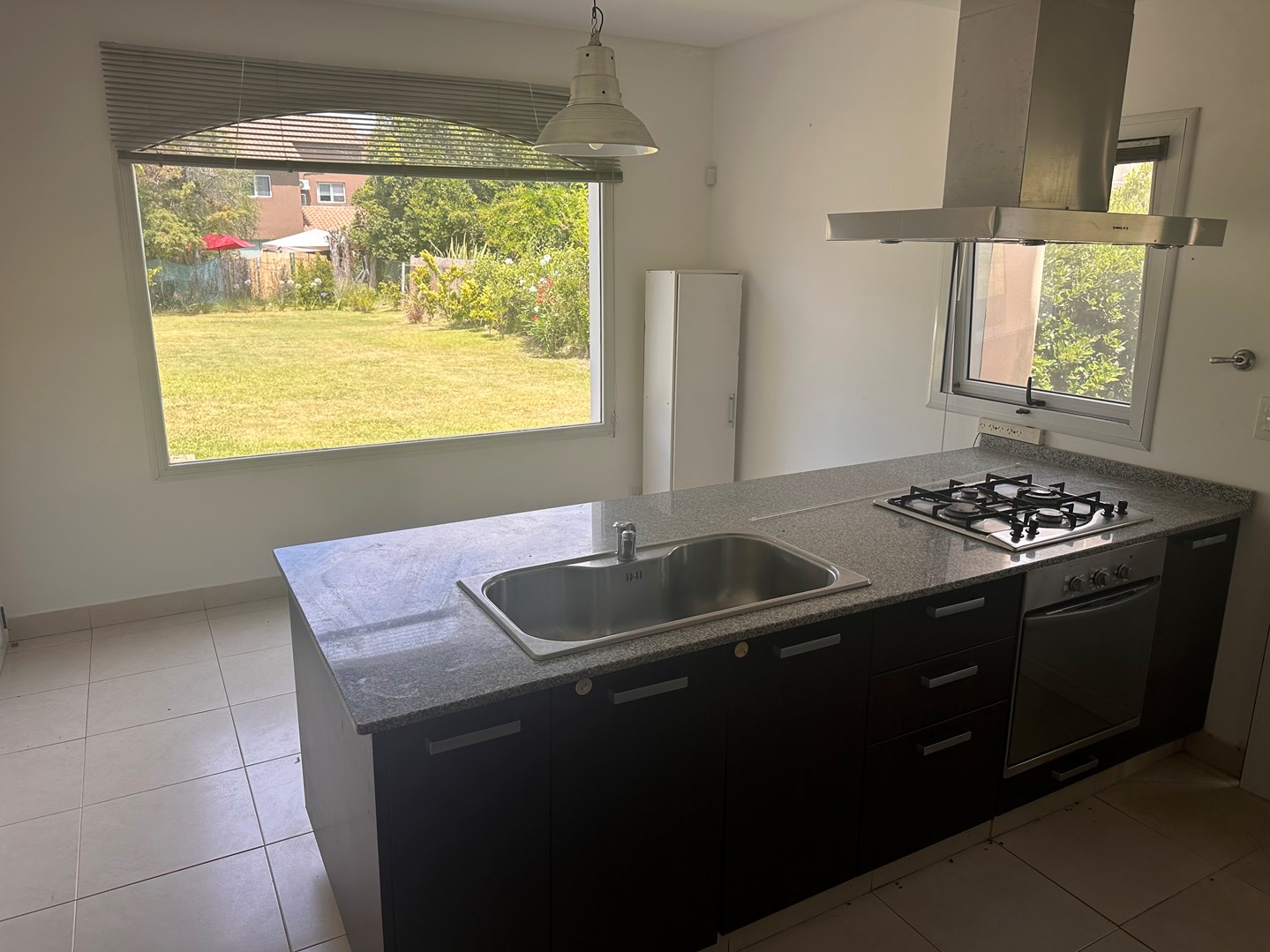 Casa en alquiler anual sin muebles, 3 dormitorios con pileta sobre lote interno. Ingreso por doble puerta de madera, hall de ingreso, toilette, escritorio, living con hogar, comedor. Cocina con espacio para comedor diario. Destacan los pisos de madera. Lavadero con entrada lateral desde cochera. En el exterior tenemos entrada imperial al ingreso y un espacio de guardado de vehículo semicubierto. Sala de maquinas en gabinete exterior. Galería con parrilla. Amplio jardín y pileta revestida con venecitas. Escalera madera luz natural, divina. 3 dormitorios, uno de ellos en suite con vestidor y los otros comparten baño completo. 2 de ellos con aires acondicionados, todos con sus placards y pisos de moquete. Aberturas de aluminio vidrio simple y calefacción de losa radiante. Orientación Suroeste. Alquiler 2 años y depósito 2 meses.