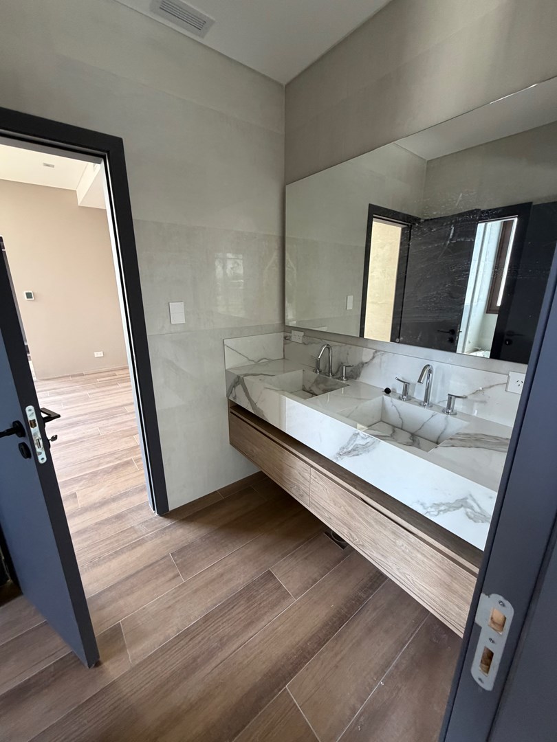 CASA RACIONALISTA DE DISEÑO | AL AGUA | A ESTRENAR EN B° VIRAZÓN Se vende imponente residencia de estilo racionalista, desarrollada en dos plantas sobre un lote de 907 m² en el exclusivo barrio Virazón. La propiedad se destaca por su arquitectura de líneas puras, la integración de espacios verdes y una calidad constructiva superior pensada para el mínimo mantenimiento y máximo confort. PLANTA BAJA (195 m²) - Integración y Espacios Sociales Acceso: Hall de recepción de gran jerarquía con puerta foliada en PVC y cerradura de seguridad. Living-Comedor: De grandes dimensiones, con ventanales de piso a techo que garantizan luminosidad y conexión fluida con la galería y el jardín. Cocina: Diseño moderno (concepto abierto o independiente), equipada con anafes de primera marca y horno empotrado. Pisos de porcelanato de alta gama. Habitación Flex: Espacio versátil en PB (Escritorio / Huésped / Dependencia) con acceso a baño completo/toilette. Servicios: Lavadero independiente con entrada de servicio. PLANTA ALTA (213 m²) - Privacidad y Descanso Master Suite: Importante dormitorio principal con gran vestidor y baño en suite con hidromasaje/bañera de diseño y doble bacha. Suites Junior: Dormitorios amplios y luminosos. Vestidores: 3 vestidores completos con interiores de melamina (estantes, cajoneras y baulera). Baños: 3 baños completos revestidos en porcelanato, con grifería de cierre cerámico y sanitarios de primera línea. Exteriores: 2 Terrazas accesibles que expanden el área de uso privado. EXTERIORES Y AMENITIES La propiedad está diseñada para disfrutar el aire libre con total privacidad: Galería: Amplia superficie semicubierta con parrilla enlosada y frente de acero inoxidable. Piscina: Espejo de agua iluminado con sistema LED, ideal para uso nocturno y diurno. Solarium: Sector atérmico y parquizado. Cocheras: Espacio guardacoches con pavimento de hormigón alisado. Paisajismo: Lote nivelado y parquizado (según avance de obra). DETALLES TÉCNICOS Y TERMINACIONES (Memoria Descriptiva) Esta casa fue construida con materiales de primera calidad para garantizar durabilidad y eficiencia: Climatización: Calefacción central por losa radiante con caldera dual de primera línea. Preinstalación de Aire Acondicionado (cañerías y desagües) en todos los ambientes. Aberturas: Carpintería de PVC de alta prestación. DVH (Doble Vidrio Hermético) en toda la casa para aislación térmica y acústica. Pisos y Revestimientos: Porcelanatos de gran formato en áreas sociales y privadas (símil madera o cemento alisado según ambiente). Revestimiento exterior plástico texturado (tipo Tarquini/Revear) sobre muros dobles/18cm. Equipamiento: Cortinas sistema Roller Screen en living y Black Out en dormitorios (incluidas). Griferías y sanitarios de marcas líderes (FV, Roca o similar). Instalaciones: Gas natural (aprobado por normativa vigente). Instalación eléctrica sectorizada. UBICACIÓN Y ENTORNO Virazón es uno de los barrios con mayor proyección de Nordelta. Posee una ubicación estratégica con salida rápida a los accesos, cercanía a los colegios Northlands, Michael Ham y Cardenal Pironio, y excelente infraestructura deportiva (canchas de tenis, Padel, fútbol, SUM y piletas propias del barrio). Nota: Las medidas, superficies, expensas y antigüedad consignadas en esta ficha pueden no ser exactas. Los datos definitivos son los que surgen del título de propiedad y de los comprobantes correspondientes. FLAVIO HERNAN FAMA. CMCPSI 6387-CUCICBA 7653 “La información de la unidad así como las medidas son aproximadas y orientativas. Las medidas exactas deberán ratificarse con la documentación pertinente y no comprometen a la empresa. las mismas surgirán del título de propiedad" Fotografías no vinculantes ni contractuales. “en el caso de Venta,la misma esta supeditada al cumplimiento por parte del propietario de los requisitos de la Resolución General 2371 de la AFIP.” Fama Bienes raices CMCPSI 6387 CUCICBA 7653