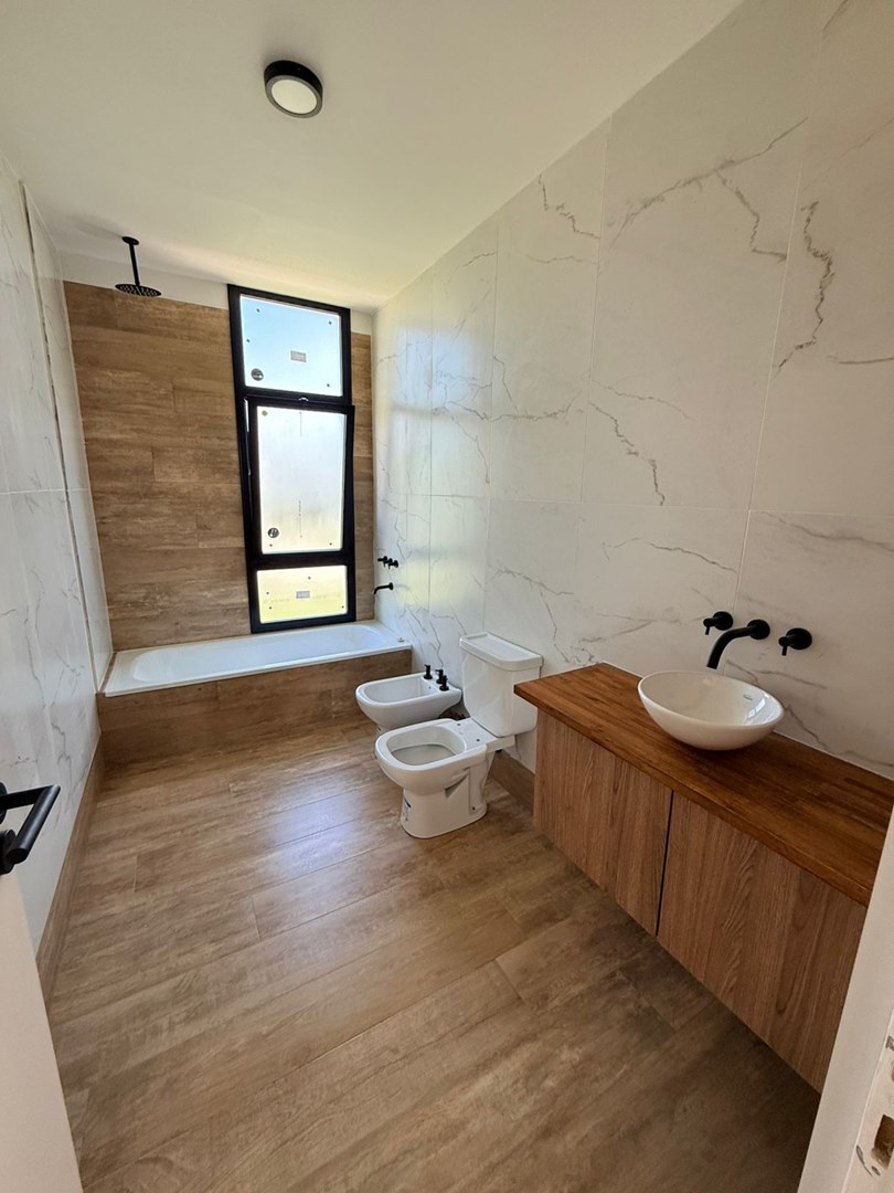 Descripción Casa en Venta en Araucarias Puertos del Lago Steel Frame | Diseño, calidad y confort En obra, último tramo entrega en 1 mes Actualizada al 15 de Agosto de 2025 Ubicada en Barrio Araucarias, esta propiedad combina diseño moderno, funcionalidad y detalles de calidad en cada ambiente. Superficie 167,44 m² cubiertos 59,13 m² semicubiertos 226,57 m² totales Lote: 527 m² Distribución Planta baja Living comedor integrado con cocina de concepto abierto y gran isla. Toilette de recepción. Escritorio o 4º dormitorio. Lavadero independiente con salida lateral. Galería cubierta con parrilla. Cochera semicubierta para 2 autos. Planta alta Master suite con vestidor y baño completo. 2 dormitorios que comparten un baño. Hall con espacio de escritorio o family. Detalles de calidad Construcción en Steel Frame. Griferías Hydromet Jet Black de embutir*. Sanitarios Ferrum Batí. Calefacción por piso radiante con caldera Baxi. Pisos de porcelanato símil madera 1,20x20. Cocina equipada con mesada de Silestone blanco y muebles en melamina gris grafito. Aberturas de aluminio con DVH. Preinstalación para aires acondicionados. Zona de pileta con equipo de filtrado Lacus.
