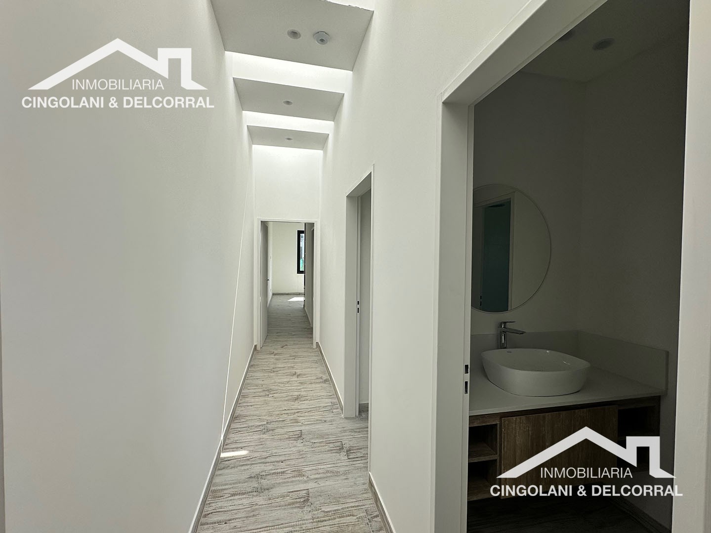 Casa en Venta Lote Interno - 4 Ambientes en El Naudir, Escobar Lote de 781,2 m² - Orientación Noreste Moderna casa de una planta con construcción tradicional y diseño vanguardista con techo de Losa, completamente equipada con paneles solares y sistema bidireccional de energía. Esta característica permite tanto el consumo como la generación eficiente de electricidad, haciendo que la propiedad sea completamente eléctrica en todos sus artefactos, contribuyendo a un estilo de vida sustentable. Detalles de interior: • Acceso seguro y cómodo: La puerta principal cuenta con acceso digital programable, brindando seguridad y comodidad en todo momento. • Privacidad y estilo al ingresar: Al ingresar, un mueble de melanina símil madera otorga mayor privacidad al amplio living, además de un práctico placard de visitas. • Cocina moderna y funcional: Cocina equipada con isla central, ideal para cocinar cómodamente. Incluye horno y anafe eléctricos de última generación. • Habitación principal de lujo: La suite principal destaca por su amplio vestidor y baño privado con doble bacha Ferrum, aportando sofisticación y funcionalidad. • Confort total: La propiedad cuenta con piso radiante en todos los ambientes, incluida la galería exterior, controlado digitalmente para ajustar la temperatura con precisión y comodidad durante todo el año. • Materiales de primera calidad: Los muebles son de melanina de alta calidad y la grifería FV garantiza durabilidad y elegancia en cada detalle. • Suministro eficiente de agua caliente: Un termotanque eléctrico Rheen de 155 litros asegura el suministro continuo de agua caliente, complementado por una bomba presurizadora Rowa de excelente calidad. Exterior de ensueño: • Galería amplia y confortable: La galería, con piso radiante, permite disfrutar del espacio al aire libre en cualquier estación. • Espacio social al aire libre: Parrilla con barra para disfrutar reuniones y momentos de ocio. • Piscina con solárium: Piscina de 32 m² con solárium símil madera y tres escalones tipo playa húmeda, perfecta para disfrutar en familia. • Riego automatizado: Sistema de riego de siete zonas, controlado por computadora, para mantener el jardín en óptimas condiciones. • Iluminación exterior completa: Iluminación perimetral en toda la casa para resaltar su belleza y seguridad por las noches. Una propiedad diseñada para quienes buscan modernidad, eficiencia y confort, en el tranquilo entorno de El Naudir, Escobar. Santiago del Corral (CMCPSI 6127) Inmobiliaria Cingolani DelCorral CONSULTA NUESTRO SITIO WEB