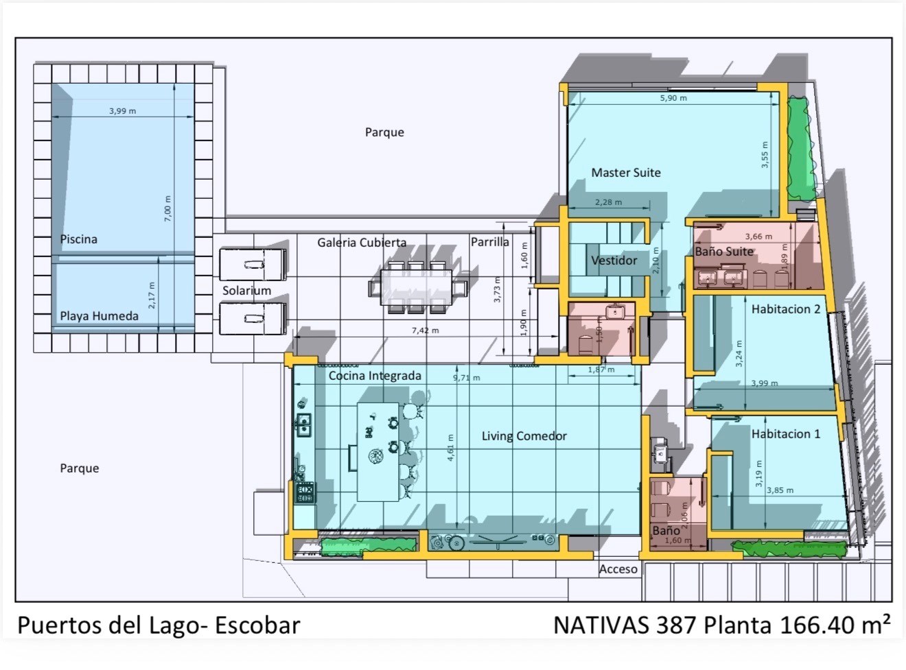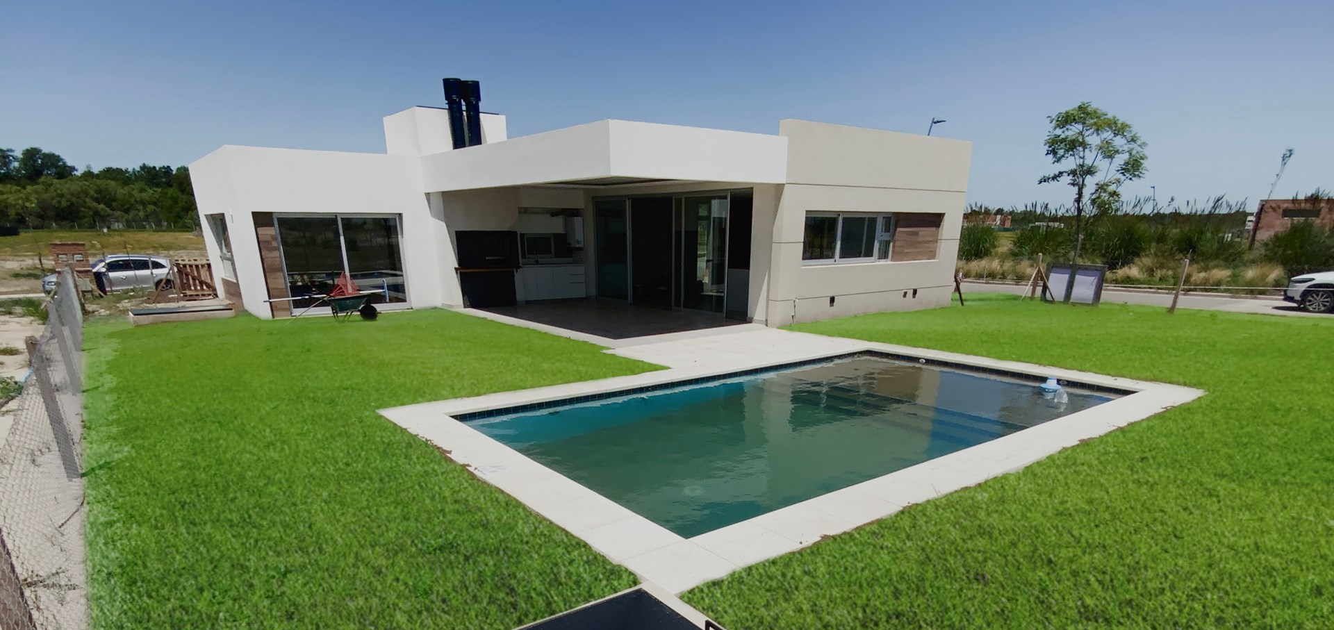 Casa moderna diseñada en una Planta, sobre lote en Esquina de 633 mts, con Fondo Orientación Oeste. La misma se encuentra ubicada a tan solo metros de la entrada principal del barrio, con vista al Futuro Bosque que tendrá el Barrio Nativas. Al ingresar, living comedor integrado, toilette de recepción, cocina Integrada con barra desayunadora y vista hacia la galería. La casa cuenta con dos habitaciones con baño compartido y master suite con vestidor y baño propio. Jardín parquizado, pileta en funcionamiento, parrilla completa con cerramiento, bacha sobre el lateral de la misma y lugar de guardado. La casa cuenta con detalles de madera en varios espacios, con revestimientos verticales y en el exterior, parasoles decorativos en caño estructural con canteros iluminados. Terminaciones: Abertura Aluar anodizado natural A30 con DVH en todos lo ambientes, Losa radiante en toda la casa, con termostatos independientes por ambiente, caldera dual a gas, Sanitarios Roca Hall, Griferia Hidromet Raptor, Mesadas de marmol, Bachas Roca Burnei, Porcelanatos 80x80 imola beige en el Living y detalles en la casa exteriores con porcelanato cerro negro simil madera lapacho, cuarzo en la cocina y parrilla, cisterna de almacenamiento de 1000 lts, con bomba elevadora, reserva de 1000 litros en terraza con presurizadora, puertas oblak. Contactame y vamos a conocer tu futuro hogar!!!