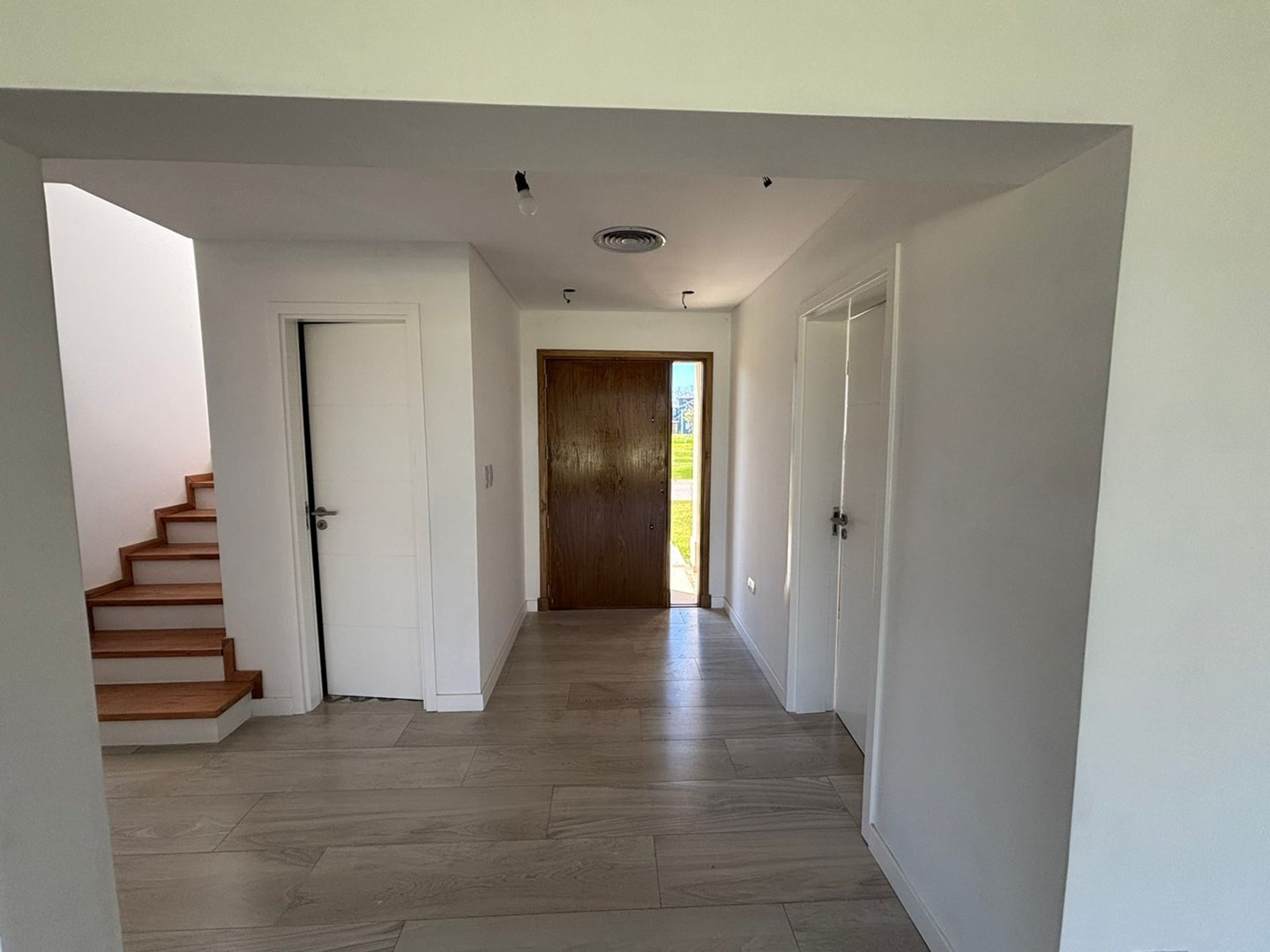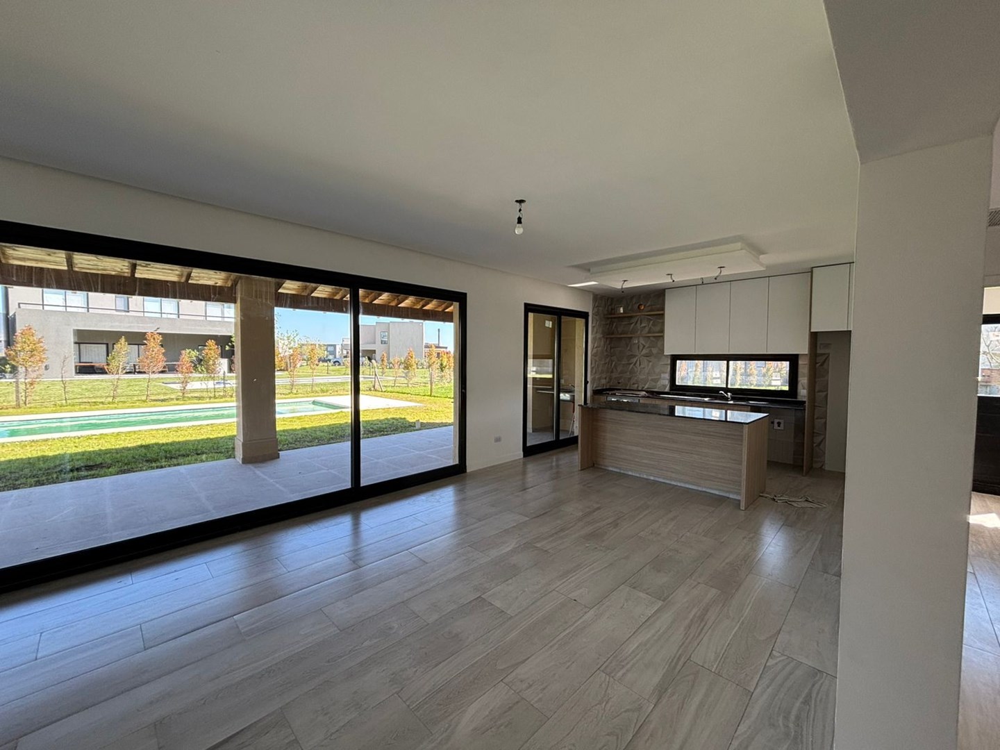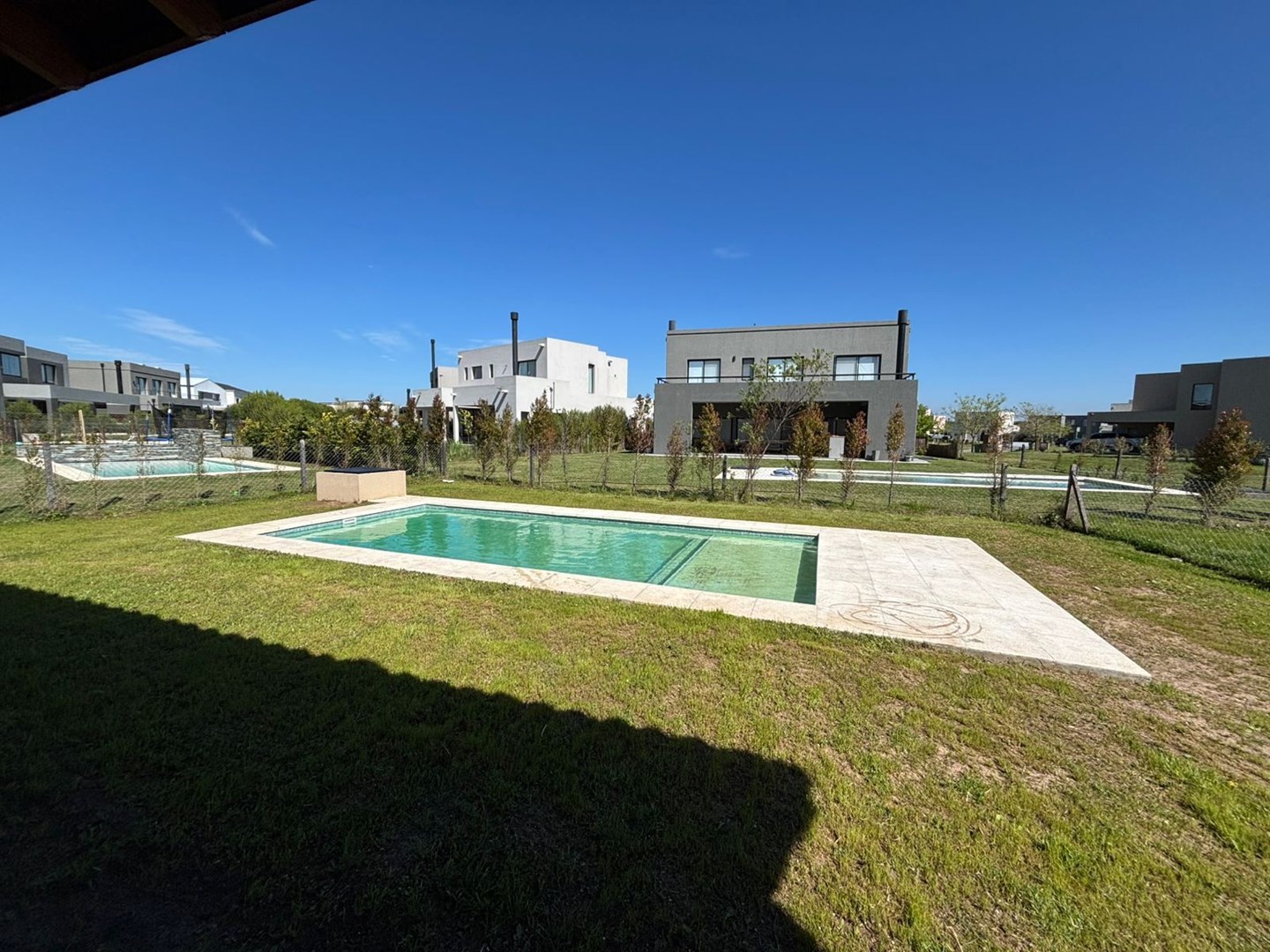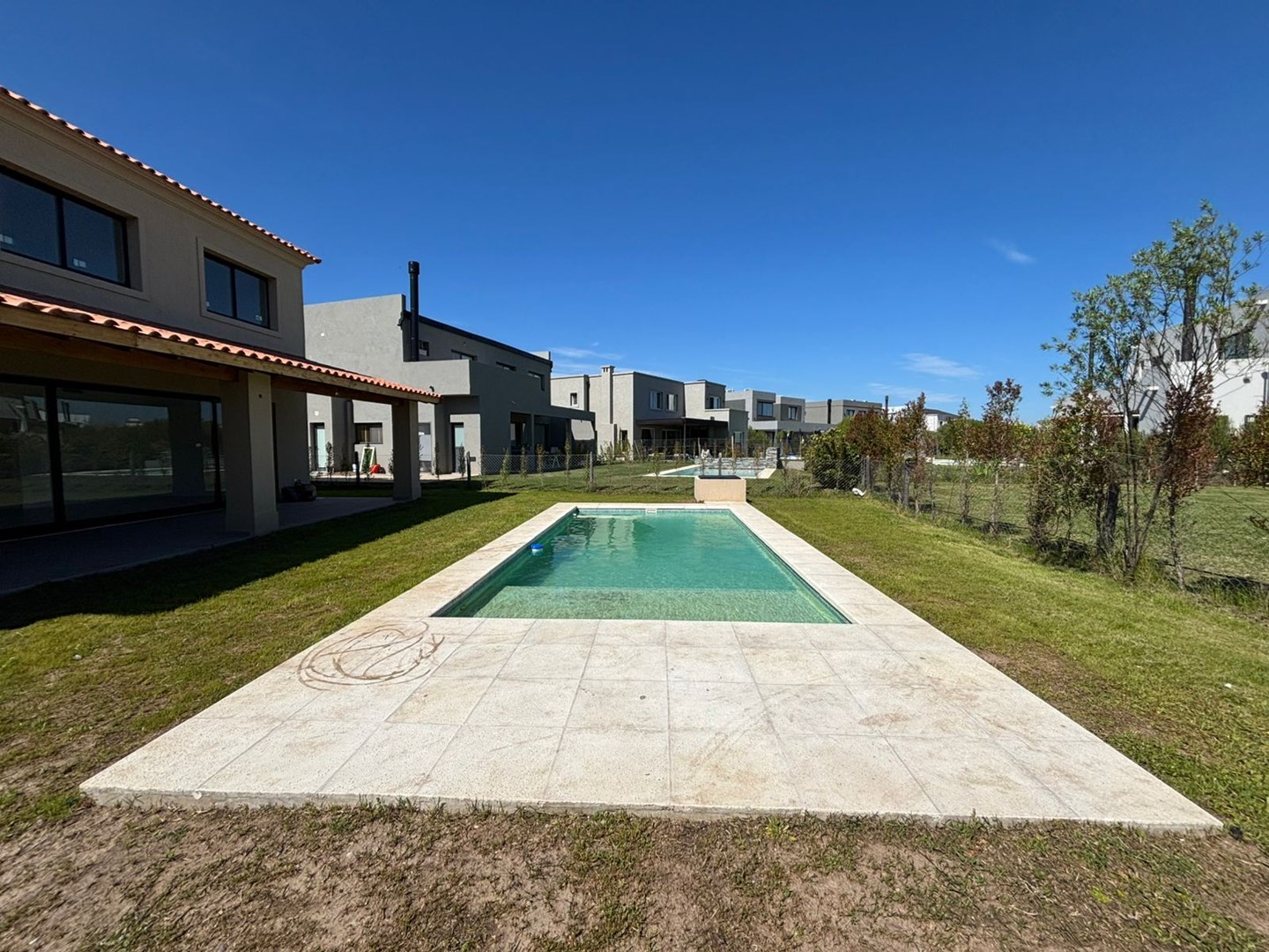 Características destacadas: Construcción sólida: Fundaciones en zapata corrida de hormigón, mampostería armada, losa de entrepiso y estructura de alta resistencia. Terminaciones Premium: Revestimientos en porcelanato importado símil madera, mesadas de mármol y granito nacional, pintura interior de primera marca y carpinterías de aluminio negro línea Módena con DVH y mosquiteros. Ambientes luminosos: Cielorrasos aplicados y de madera vista barnizada, grandes ventanales y distribución funcional. Baños de diseño: Principal en porcelanato 60x120, mesadas de mármol, griferías FV y sanitarios Ferrum. Cocina equipada: Anafe y horno eléctrico Longvie, campana extractora, muebles a medida y bacha doble de acero inoxidable. Climatización: Sistema centralizado frío/calor inverter en ambas plantas con rejas regulables en todos los ambientes. Pileta de hormigón armado: Con vereda atérmica, guarda de venecita y equipamiento completo para su mantenimiento. Parque y exterior: Riego automático, pasto bermuda, cerco perimetral, acceso vehicular preparado y espacio para varios autos.