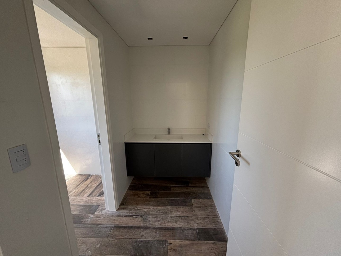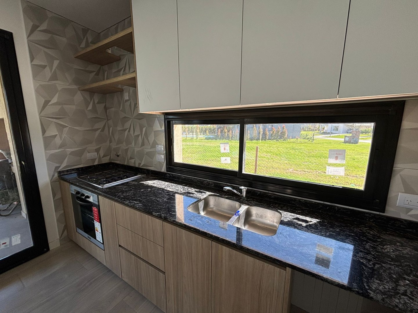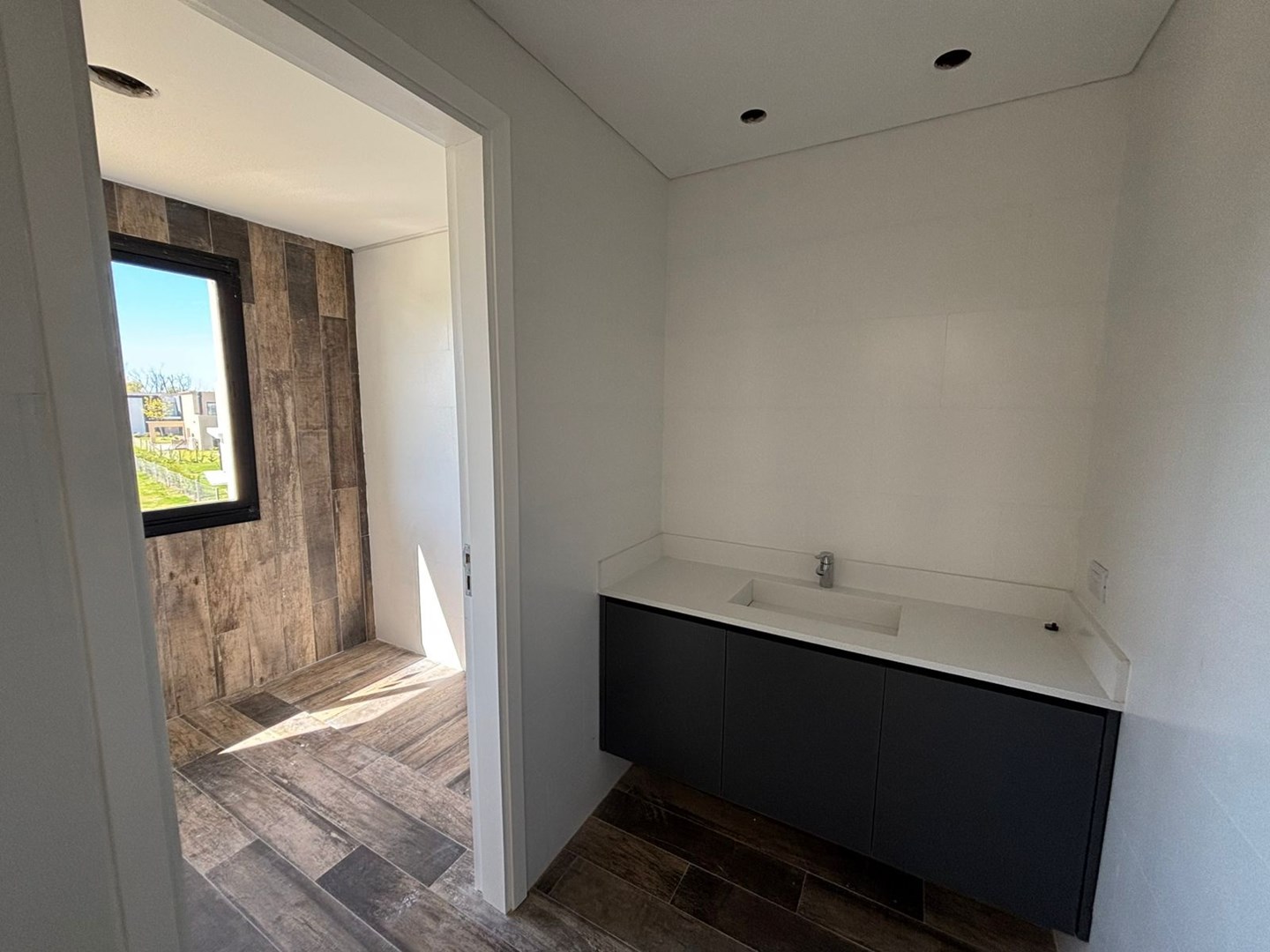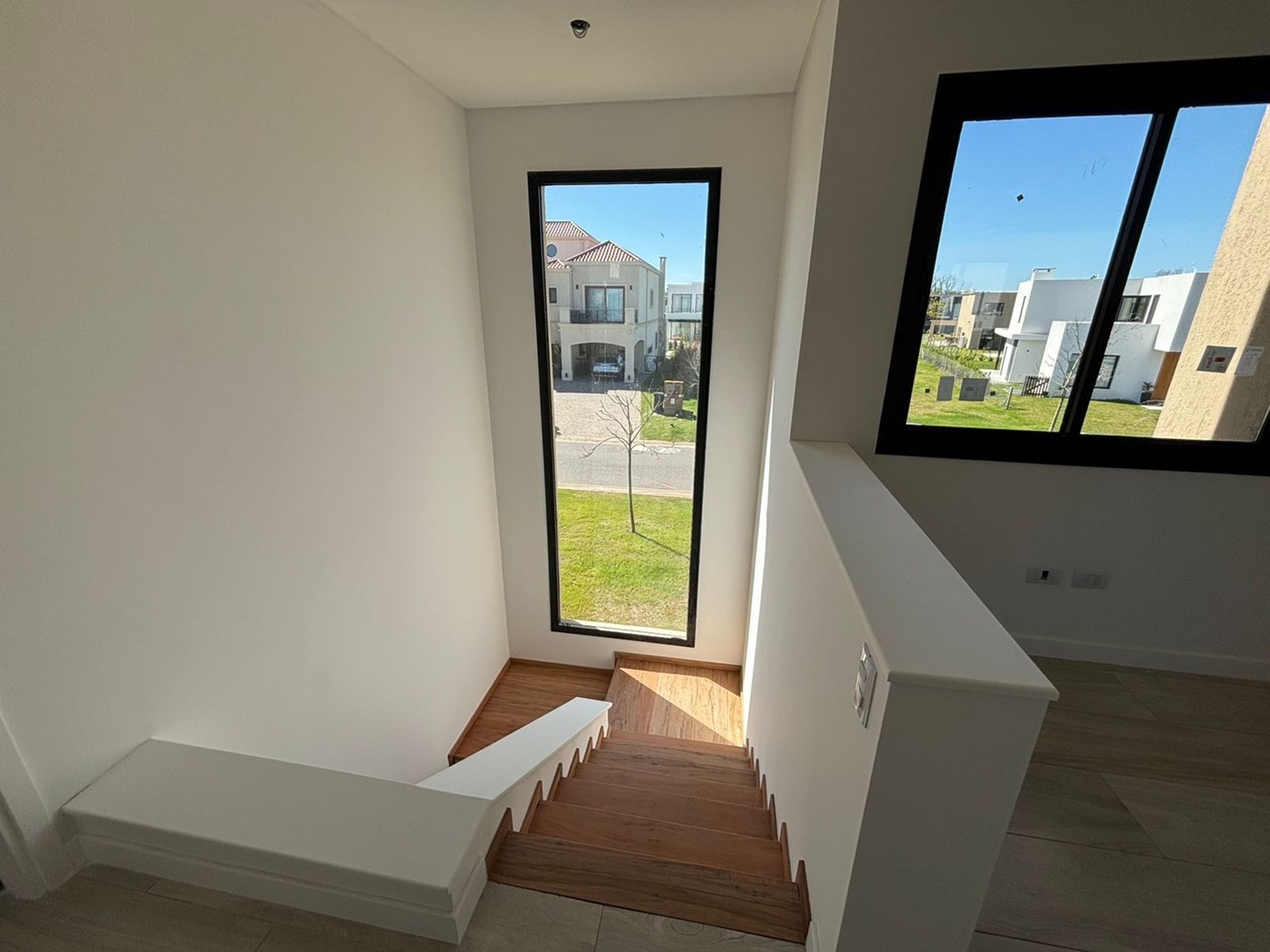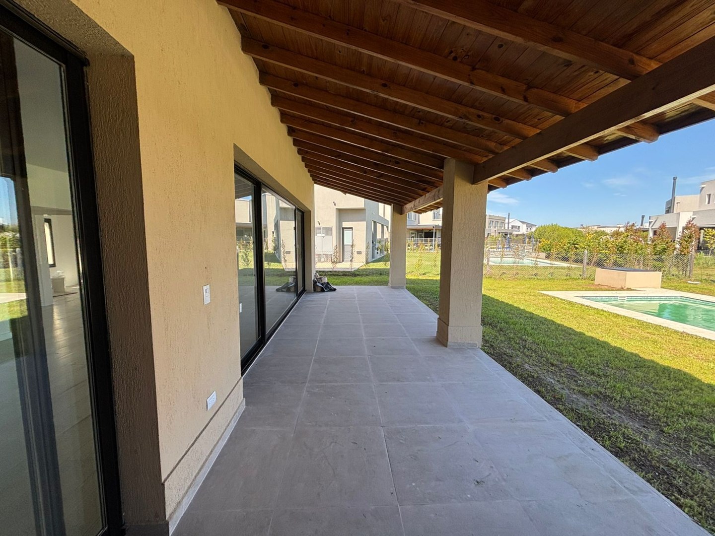 Características destacadas: Construcción sólida: Fundaciones en zapata corrida de hormigón, mampostería armada, losa de entrepiso y estructura de alta resistencia. Terminaciones Premium: Revestimientos en porcelanato importado símil madera, mesadas de mármol y granito nacional, pintura interior de primera marca y carpinterías de aluminio negro línea Módena con DVH y mosquiteros. Ambientes luminosos: Cielorrasos aplicados y de madera vista barnizada, grandes ventanales y distribución funcional. Baños de diseño: Principal en porcelanato 60x120, mesadas de mármol, griferías FV y sanitarios Ferrum. Cocina equipada: Anafe y horno eléctrico Longvie, campana extractora, muebles a medida y bacha doble de acero inoxidable. Climatización: Sistema centralizado frío/calor inverter en ambas plantas con rejas regulables en todos los ambientes. Pileta de hormigón armado: Con vereda atérmica, guarda de venecita y equipamiento completo para su mantenimiento. Parque y exterior: Riego automático, pasto bermuda, cerco perimetral, acceso vehicular preparado y espacio para varios autos.