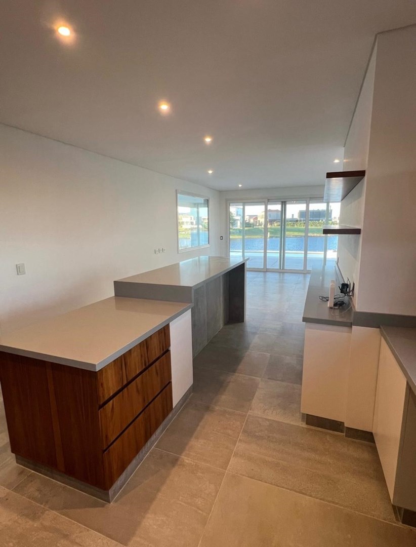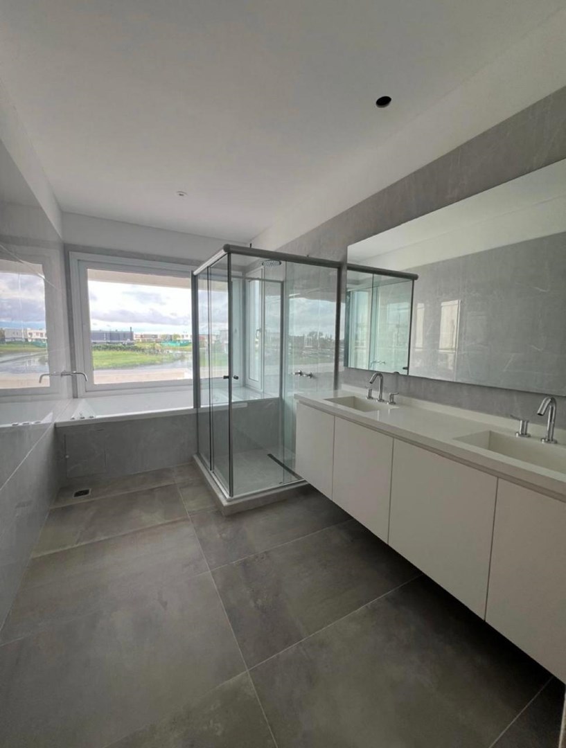 Excelente oportunidad de adquirir una casa de ensueño en Puertos, Escobar! Esta propiedad a estrenar, ubicada en el exclusivo Barrio Marinas, ofrece un estilo de vida único con acceso a la laguna y todas las comodidades que tu familia merece. Características 4 dormitorios + playroom: Amplios espacios para el descanso y el entretenimiento de toda la familia. Orientación Norte: Luminosidad y calidez natural durante todo el día. Vistas a la laguna: Despertarás cada mañana con paisajes serenos y relajantes. Diseño funcional: Distribuida en dos plantas para mayor comodidad y privacidad. Piscina y parrilla: Disfruta de momentos inolvidables al aire libre. Barrio cerrado con seguridad: Tranquilidad y protección para tu familia. Club Haus con pileta y canchas de tenis: Opciones para el deporte y la recreación. Ubicación privilegiada: Cercanía a la Bahía, zona comercial y gastronómica. Distribución Planta baja: Hall de distribución. Amplio living comedor. Toilette de recepción. Escritorio. Cocina con comedor diario. Lavadero. Dependencia de servicio. Planta alta: Playroom/Escritorio integrado. Master suite con vestidor, jacuzzi y balcón. Suite junior con placard. Total 4 dormitorios. Exterior: Galería con parrilla. Piscina revestida en venecitas blancas. Baño exterior. Barrio Marinas Marinas es un barrio Premium con 258 lotes, todos con salida navegable al lago central. Cuenta con un club con pileta y dos canchas de tenis, y se encuentra cercano a la Bahía, una zona con una amplia oferta comercial y gastronómica.