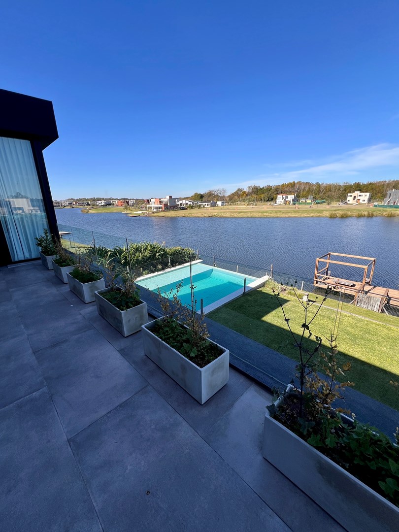 Imponente casa a la laguna en Santa Ana – Villanueva | Diseño, calidad y vistas únicas Esta espectacular vivienda de altísima calidad se encuentra desarrollada sobre un lote a la laguna en el barrio Santa Ana, con excelente acceso y un entorno privilegiado. Su diseño moderno, los detalles constructivos de primer nivel y la amplitud de cada uno de sus ambientes la convierten en una propiedad única. En planta alta, cuenta con tres suites, cada una con vestidor propio, y una sala de cine con baño completo, que puede funcionar como una cuarta habitación. Esta sala tiene salida a una terraza con una vista imponente a la laguna. La planta baja ofrece un amplio living comedor con una altura de 8 metros, toilette de recepción, cocina integrada con gran isla, despensa, lavadero, dependencia de servicio y cochera cerrada para dos autos. Entre sus características más destacadas se encuentran: refrigeración central, aberturas premium de PVC con vidrio DVH, pisos porcelanatos de primera línea, calefacción por piso radiante, griferías FV de alta gama, cocina industrial de cinco hornallas, hogar a gas en "L", iluminación de excelente calidad, fogonero, muelle propio y una impactante pileta revestida en venecitas de 78 m² con vista al lago. Una propiedad para disfrutar del confort, la amplitud y la vida en contacto con la naturaleza, sin resignar diseño ni calidad. “La información de la unidad así como las medidas son aproximadas y orientativas. Las medidas exactas deberán ratificarse con la documentación pertinente y no comprometen a la empresa. las mismas surgirán del título de propiedad" Fotografías no vinculantes ni contractuales. “en el caso de Venta,la misma esta supeditada al cumplimiento por parte del propietario de los requisitos de la Resolución General 2371 de la AFIP.” Fama Bienes Raices CMCPSI 6387 CUCICBA 7653